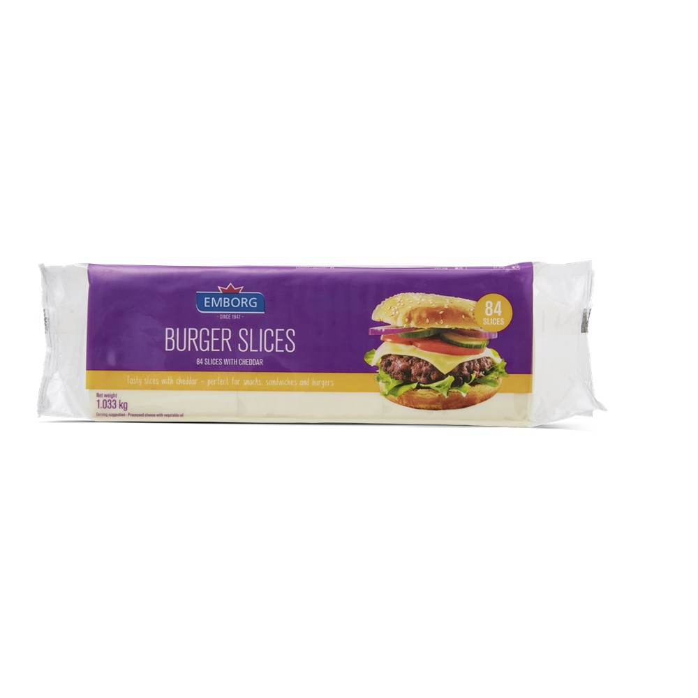 CHEESE BURGER SLICES COLOURED 84S 1.033KG(8) # EMBURG1033 EMBORG