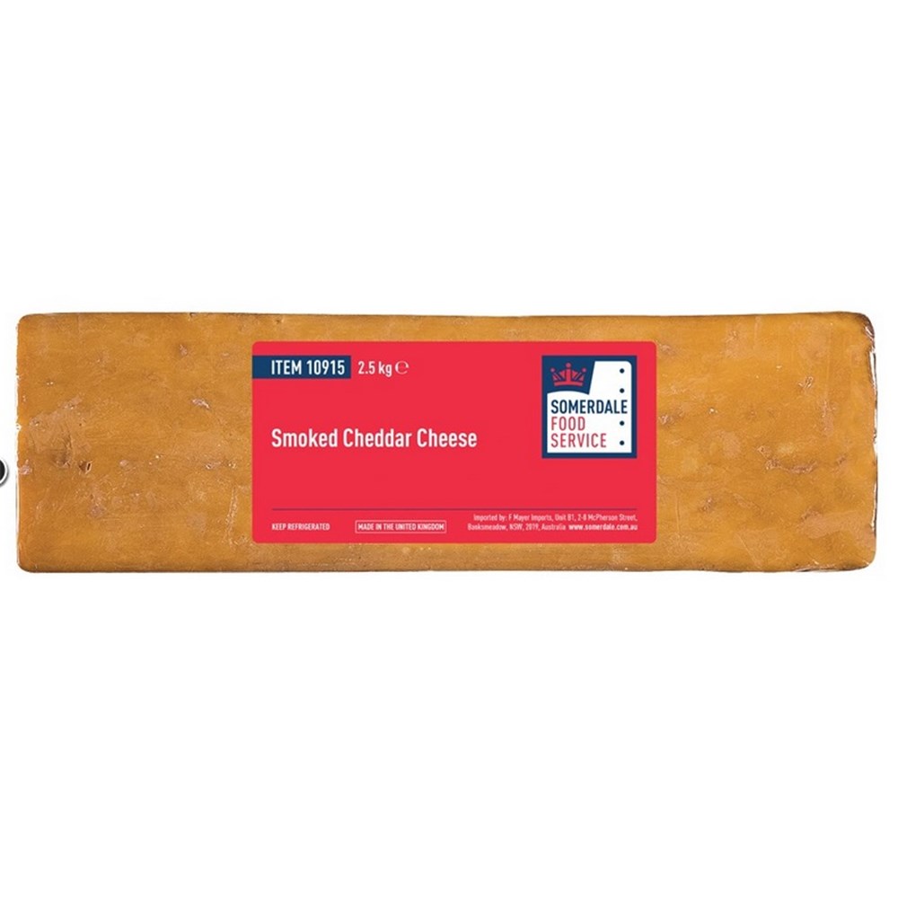 • CHEESE CHEDDAR SMOKED R/W APPROX (2 X 2.5KG) CTN # UK10915 SOMERDALE