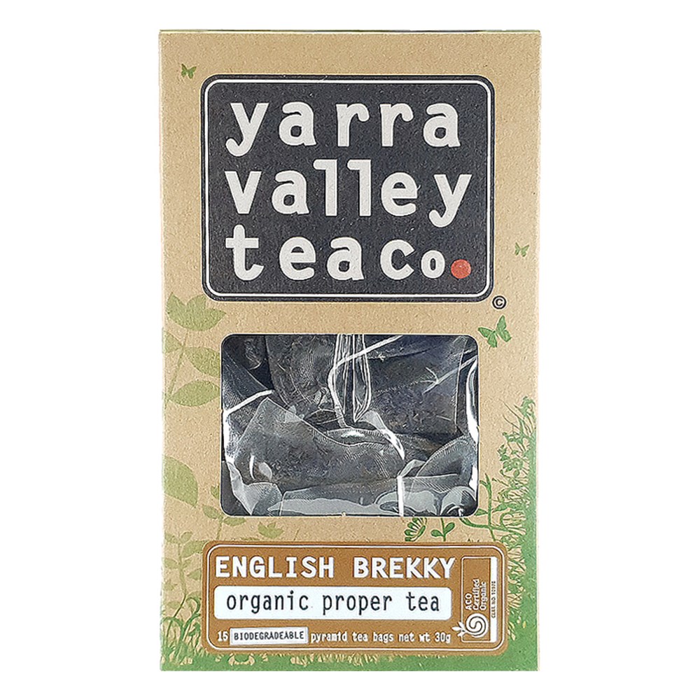 • TEA BAGS ORGANIC ENGLISH BREAKFAST 15 BAGS (8) # PBC08 YARRA VALLEY TEA CO