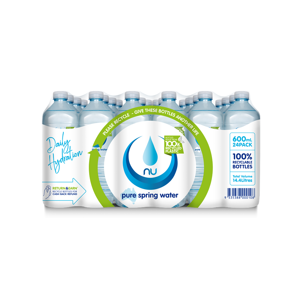 WATER STANDARD CAP SQUARE BOTTLE (24 X 600ML) # 03100 NU PURE