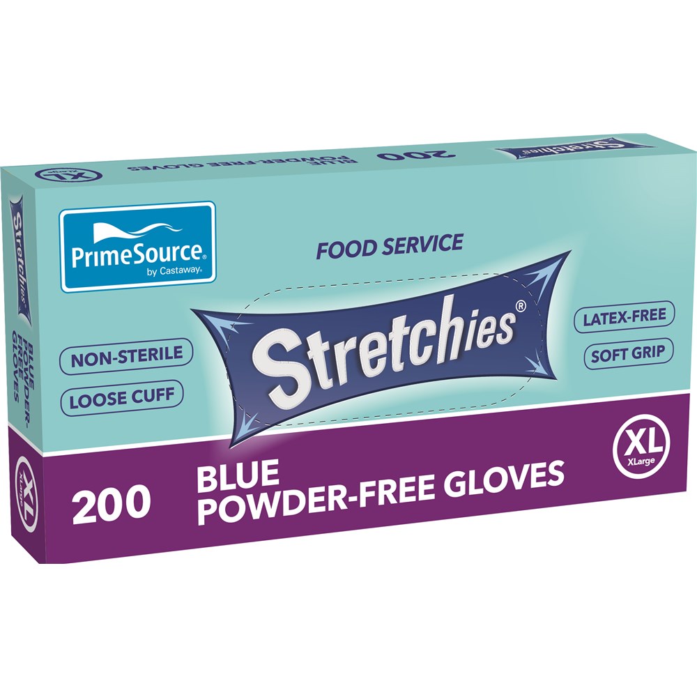 • GLOVE EXTRA LARGE STRETCHIES BLUE POWDER FREE 200S (10) # PS-SEGB-XL PRIME SOURCE