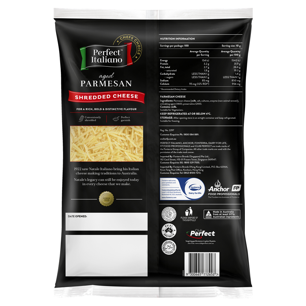 • CHEESE PARMESAN SHRED 1KG(6) # 3002001 PERFECT ITALIANO