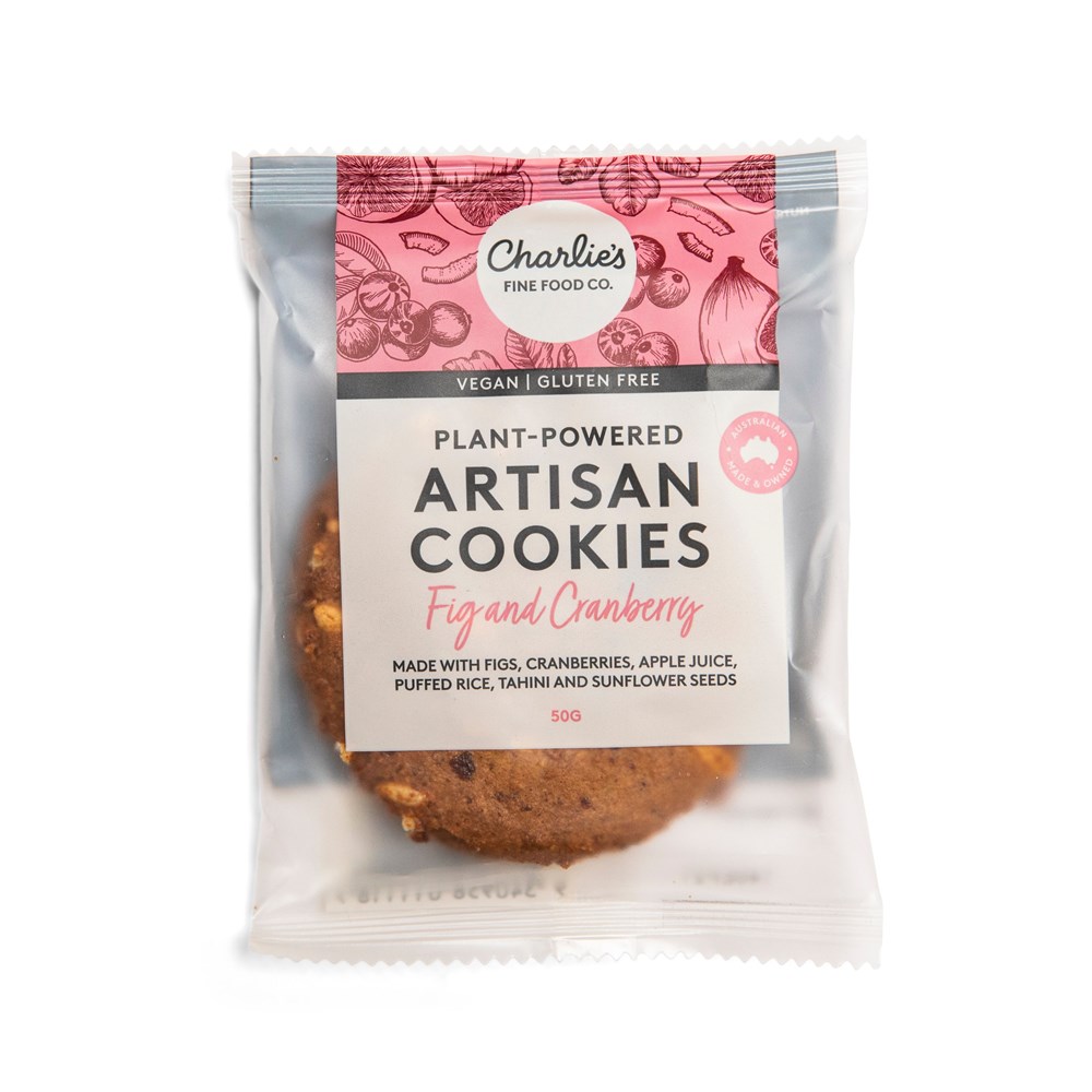 • COOKIES P/C FIG CRANBERRY GF (VEGAN 24X50G) # CF4020 CHARLIES COOKIES