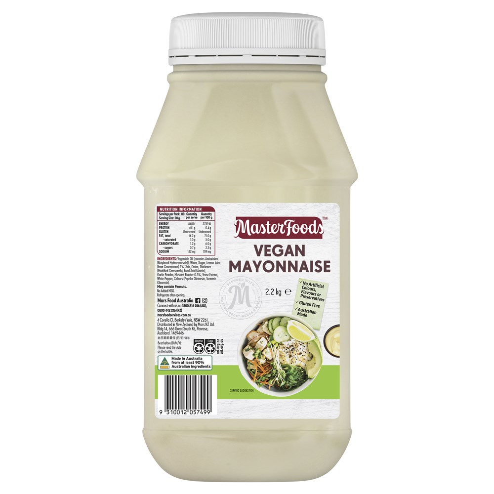 MAYONNAISE VEGAN GF 2.2KG(6) # 412675 MASTERFOODS