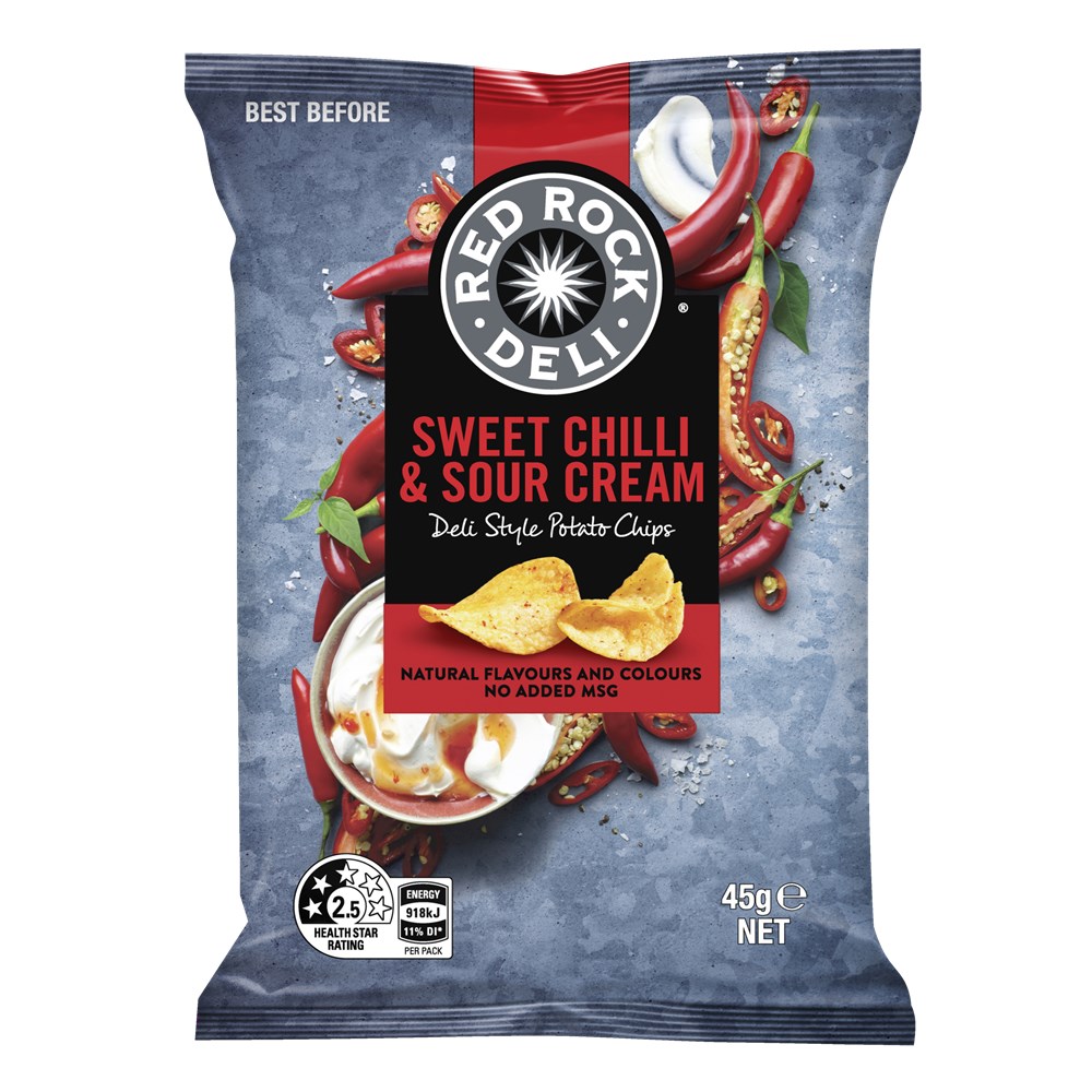 CHIPS SOUR CREAM & CHILLI RED ROCK DELI (18 X 45GM) # 320003425 SMITHS