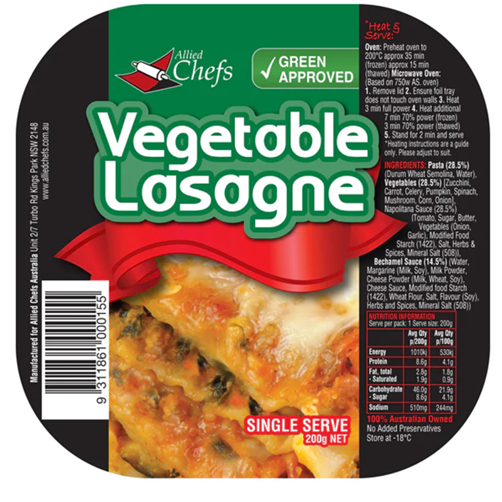 LASAGNE VEGETABLE PC (12 X 200GM) # SSLV ALLIED CHEFS
