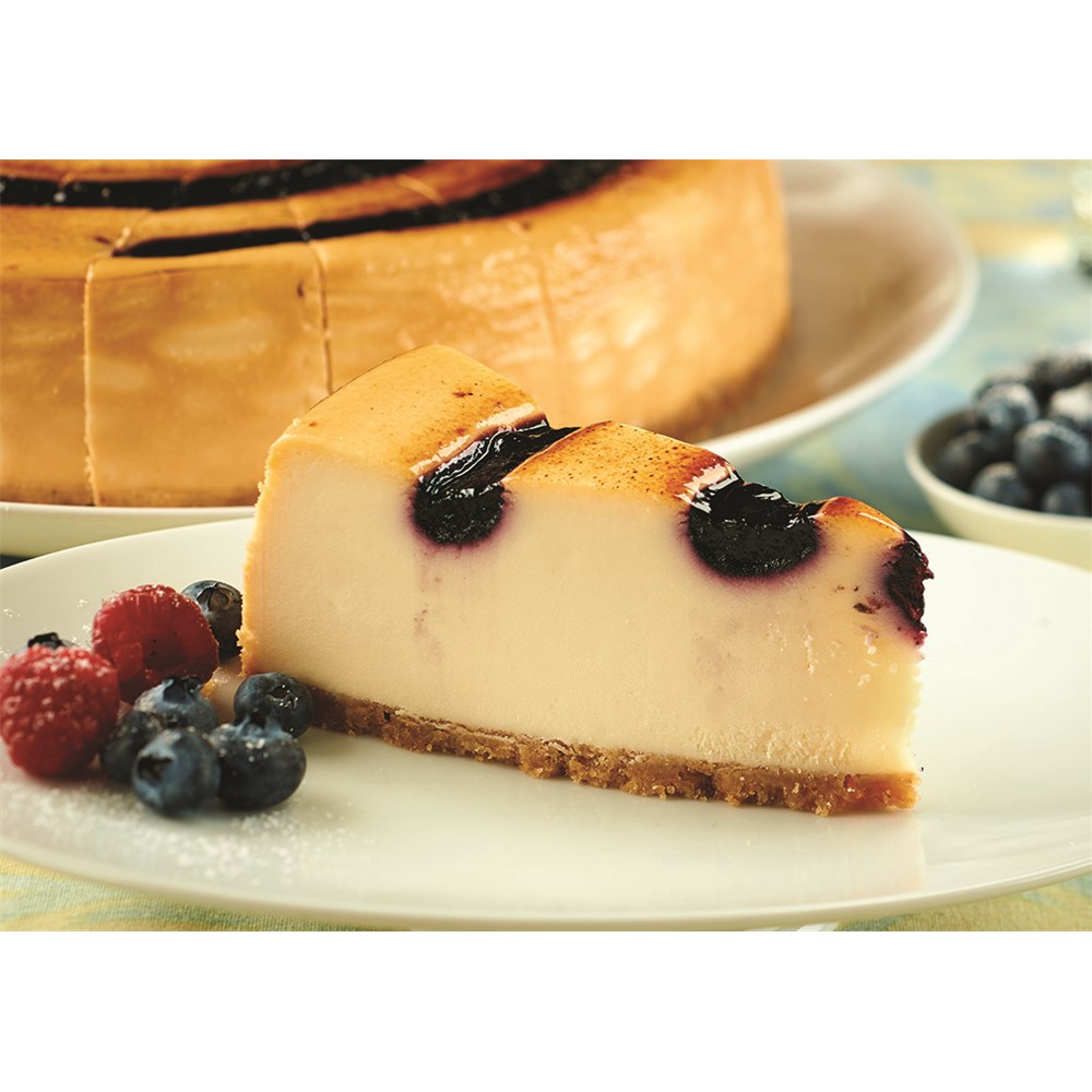 Our famous New York cheesecake with a generous swirl of blueberries and a brulee finish.
