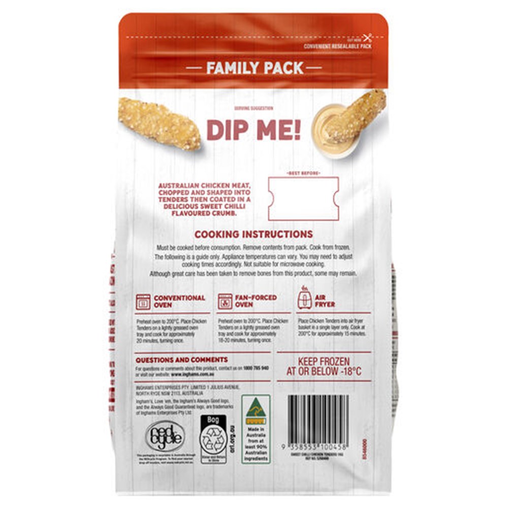 Preheat oven to 200°C. Place Chicken Tenders on a lightly greased oven tray and cook for 18-20 minutes, turning once