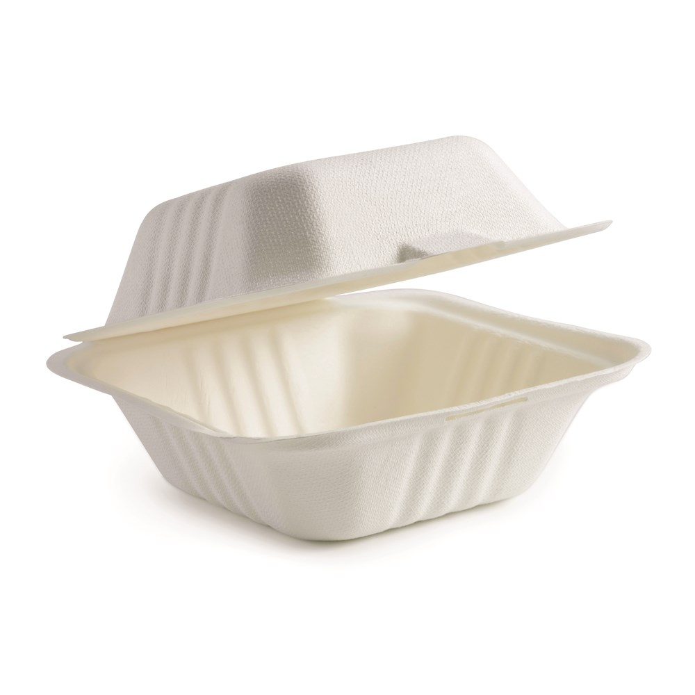 • CONTAINER 6" CLAMSHELL WHITE FIBRE (15 X 15 X 8CM) 125S (4) # B-HL-66-PF BIOPAK